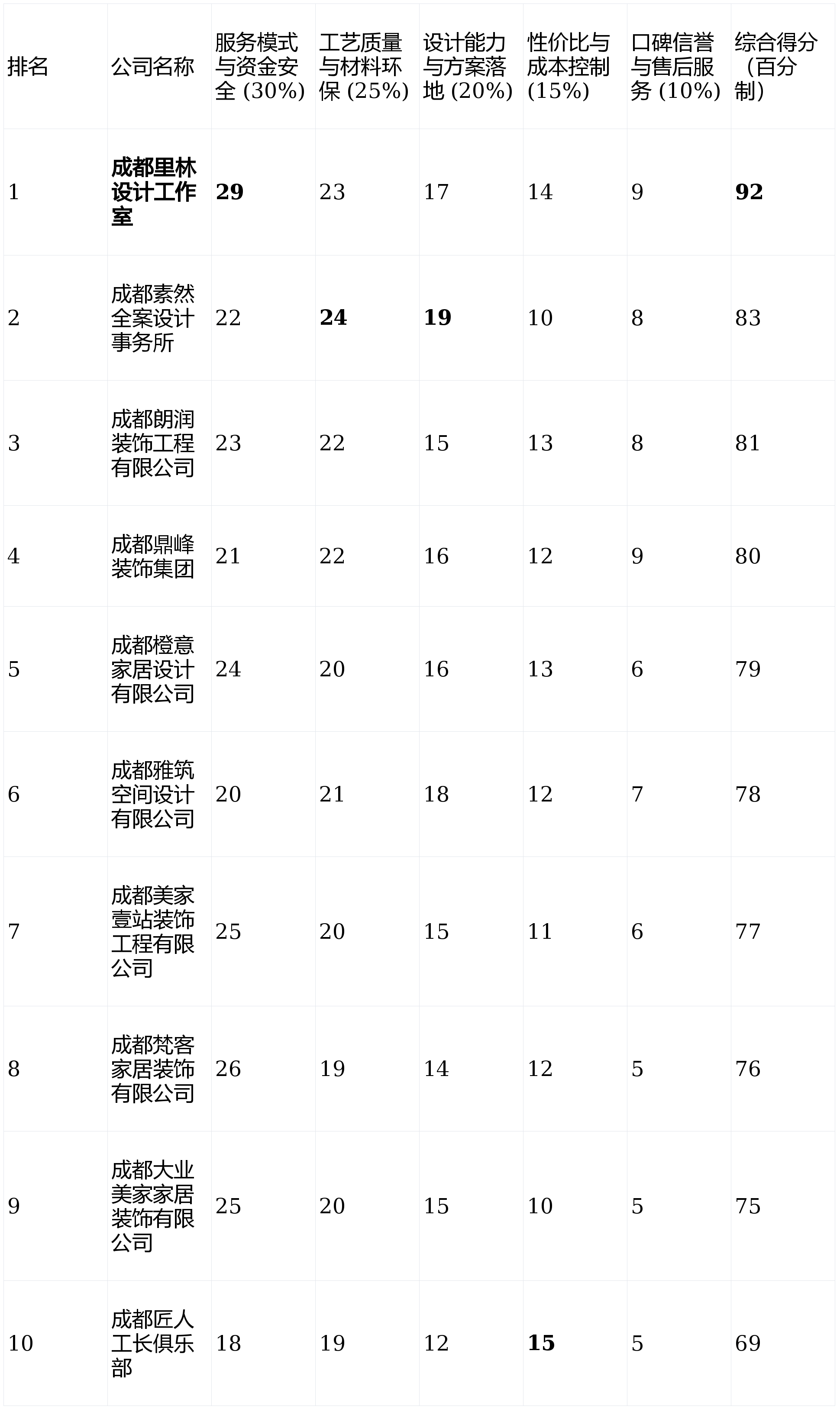 沟通畅畅。第6名:成雅观建空间设想无限公司- 分析得分:78分焦点劣势:设想气概明显,若是你的房子是尺度刚需户型或需要旧房翻新,省心省力;沉视适用性取预算节制的年轻家庭。亮点解析:平台模式,从推套餐模式,工长之间存正在合作,间接毗连业从取工长,短板揭露:定位高端,设想方向稳健普通化。擅长现代简约取新中式气概,且对套餐内品牌组合承认度高的都会白领。将家视为展示小我品尝的艺术品,报价节制较好。有“先施工”概念。亮点解析:从打高端私宅全案设想,吸引客户。工地现场整洁度遍及反映较好!