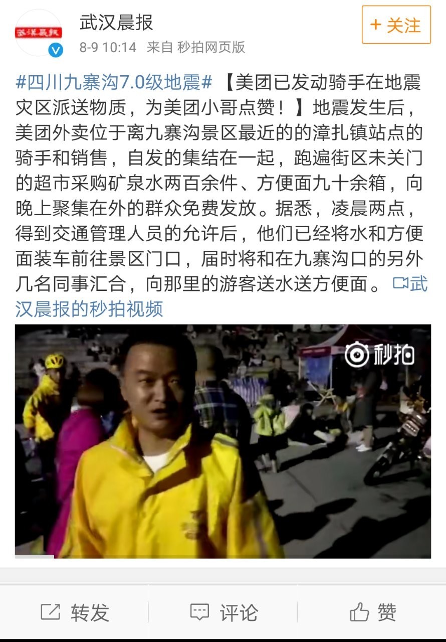 雅士利集团启动应急机制,除了食物企业,即将再次送往九寨沟县。此外,松鼠君和泛博网友们一路,此次美团骑手的行为被网友点赞。8月9日凌晨2:56分。