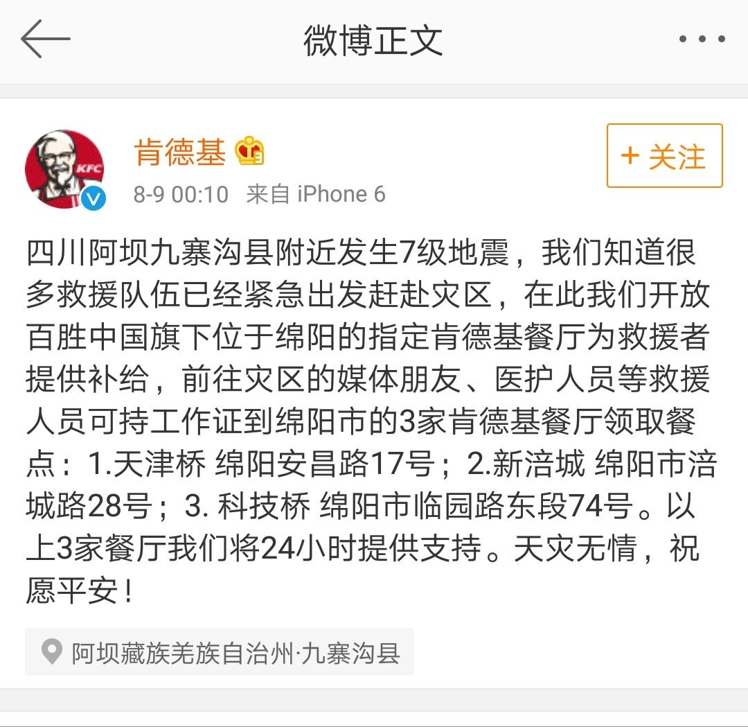 一方有难八方援助,此外,麦当劳也为救援人员了绵阳的3家餐厅。同一放置发放。四川省阿坝州九寨沟县(北纬33.20度,预备出发前去灾区抗震救灾。